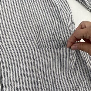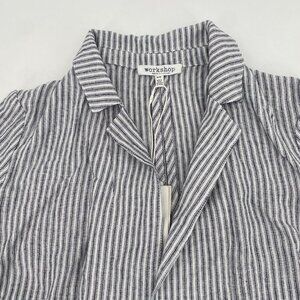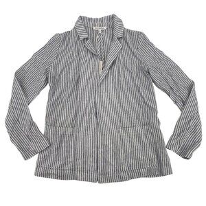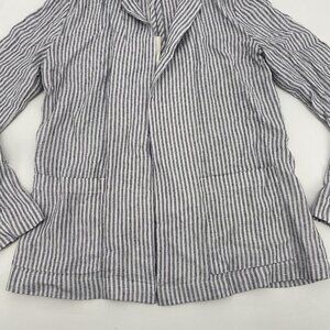 Workshop Size M Open Front Blazer Linen Blend White Gray Pencil Stripe NWT