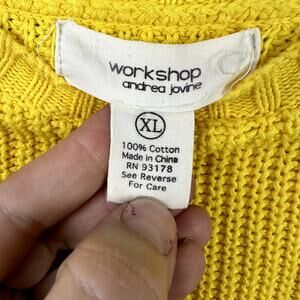 Workshop Andrea Jovine Yellow Varsity Sweater Navy Blue Stripe Ribbed Pullover Boxy XL Extra Large