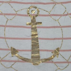 🔹️Workshop White & Pink Striped Gold Anchor Boxy Cropped Top XSmall