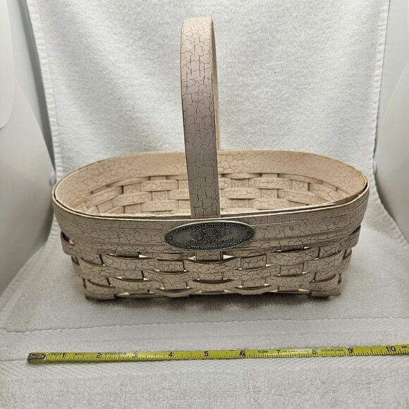• Aged White Crackle Basket Hand Crafted by The Workshops of Gerald E. Henn