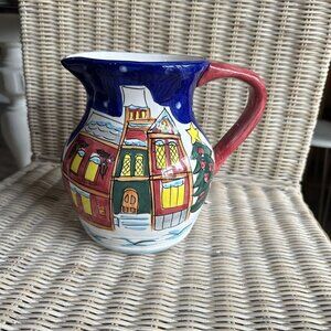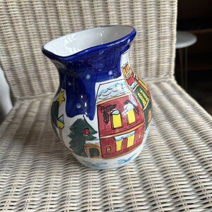 World Bazaar Christmas Pitcher Village Christmas Tree Scene...approx 7.5" tall