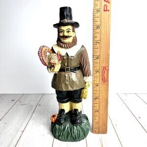 World Bazaars Harvest Collection Pilgrim Man Figurine Turkey Corn Thanksgiving