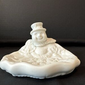 World Bazaar's Snowman Dish, White Ceramic Candy, Soap, Bowl Decor Frosty