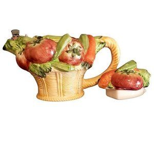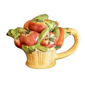 World Bazar Vegetable Basket Ceramic Teapot Vintage 6in