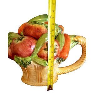 World Bazar Vintage Vegetable Basket Ceramic Teapot. Beautiful bright colors. Cottagecore, Excellent quality and condition. No chips or cracks. There are surface cracks on the bottom as shown in last photo. Safe packaging and fast shipping