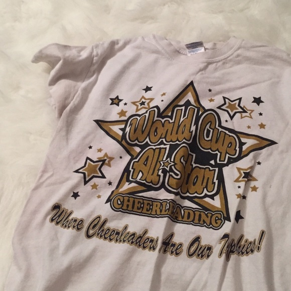 White t-shirt representing World Cup all stars. Big cheetah World Cup logo on back😍