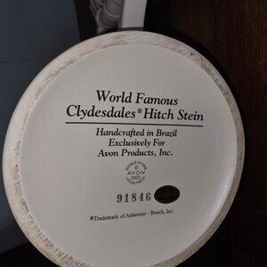 This lidded beer stein is titled World Famous Clydesdales Hitch Stein from Anheuser-Busch, Inc/Budweiser for Avon.