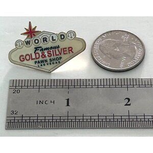 World Famous Gold & Silver Pawn Shop Las Vegas Souvenir Enamel Lapel Pin. Quarter and ruler to show size only. Please check out my other pins for combined shipping. Thank you