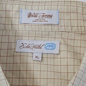 World Famous Rino Brand Eck Unltd Short Sleeve Shirt Men's XL Brown Check EUC LN