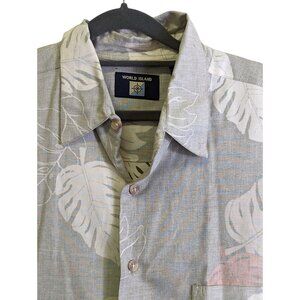 World Island Tropical Hawaiian Button Up Shirt Men size XL Gray Beachy Island