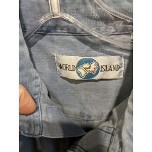 World Island shirt Denim Light Distressed Wash Cotton Short Sleeve Button Large.
