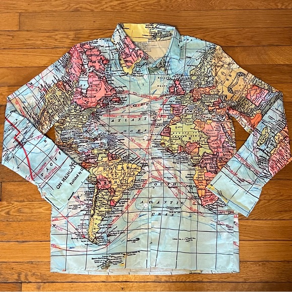 World Map Button Down - NWOT