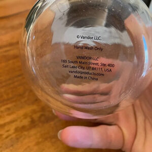 Note: the close up images make it appear as though the text and map are stickers, but they aren't. Some how the text and world image is almost glazed on the glass and it has not chipped, cracked, moved, or faded for me (I have the same set of glasses) - and i've even put them in the dishwasher! Although hand-washing is recommended