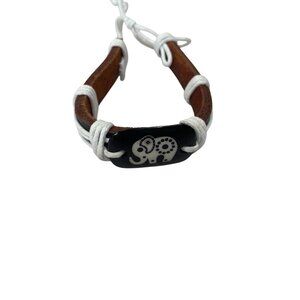Adjustable Elephant Bracelet: Leather cord bracelet with a detailed ivory-toned elephant on a glossy black ceramic centerpiece. Adjustable sliding closure fits most wrists.
