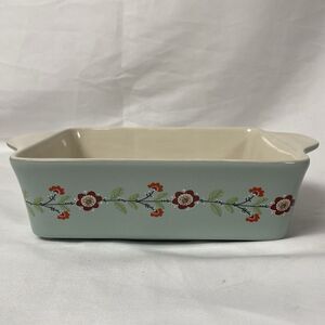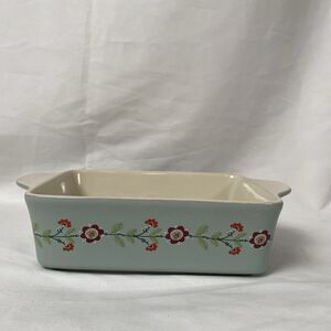 World Market Bakeware Sage Green Floral Ceramic Casserole Dish Small 7" x 4"