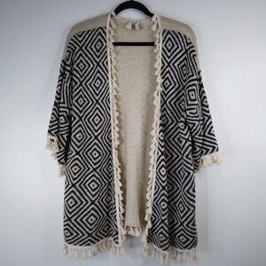 World Market Boho Aztec Tassel Open Front Cardigan OS