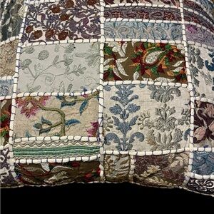 World Market Boho Embroidered Patchwork 17” Square Throw Pillow