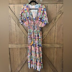 World Market Boho Geometric Print Midi Short Sleeve Rayon Dress Size S/M