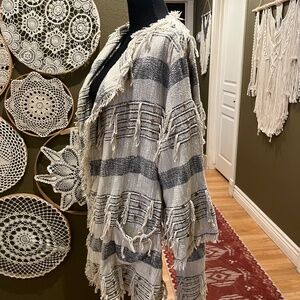 World Market Boho Striped Fringe Open Cardigan – Size L/XL