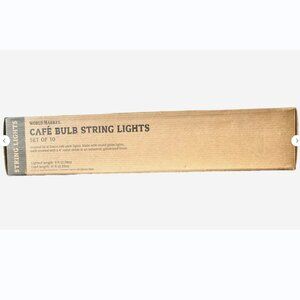 Add a touch of warm industrial charm to your space with these World Market Café Bulb String Lights. This set of 10 galvanized metal shades with globe bulbs features a stylish café-bistro design, perfect for creating a cozy glow on your patio, porch, or backyard.