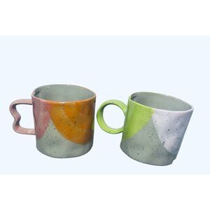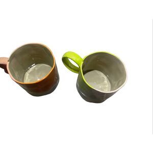 Super cute set of world market mugs, dishwasher, and microwave, safe hand painted, and signature logo