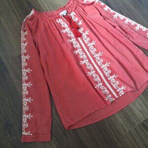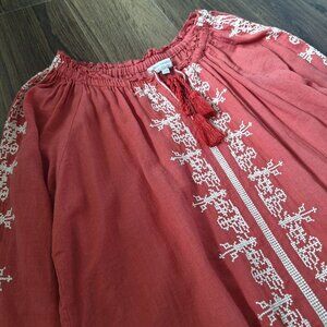 World Market Embroidered Oversized Lightweight Boho Peasant Blouse.