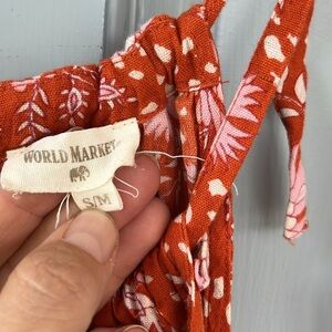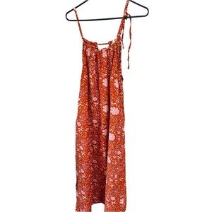 World Market Estrella Floral Dot Fall Orange Maxi Swing Dress Women’s Size S/M