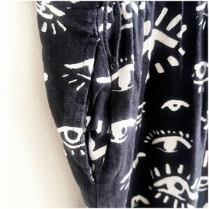 World Market Evil Eye Print Jumpsuit Size Large/XL Cotton Linen Blend Pockets