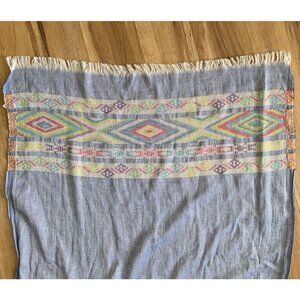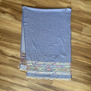World Market Light Blue Aztec Scarf 79” By 26.5” Lightweight Soft. Gently used. No tears or stains. Stored in pet and smoke free home.