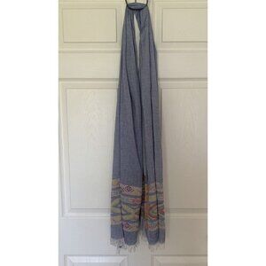 World Market Light Blue Aztec Scarf 79” x 26.5” Lightweight Soft Fringe