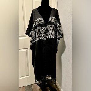 World Market Linen Blend Embroidered Southwestern Wrap Shawl Fringe One Size