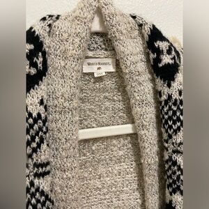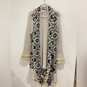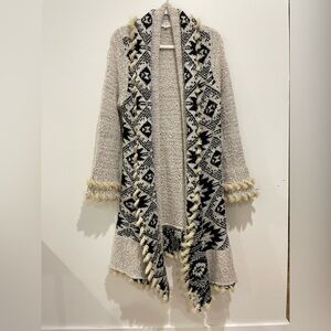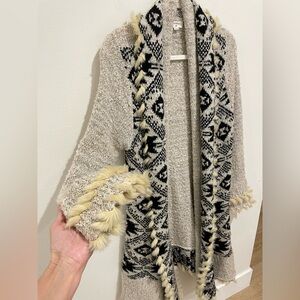 World Market Long Cardigan Fur Trim Sweater Duster Boho Fringe Size M/L Hippie