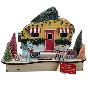 World Market Mid-Century Modern Trailer LED Christmas Decor Laser Cut Wood NEW