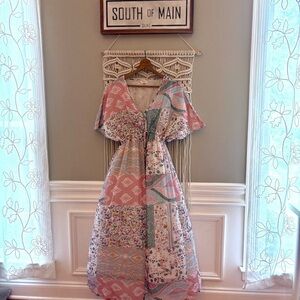 boho kaftan dress patchwork maxi pastel world market mira festival summer hippie soft flowy resort vacay comfy kimono sleeve s m