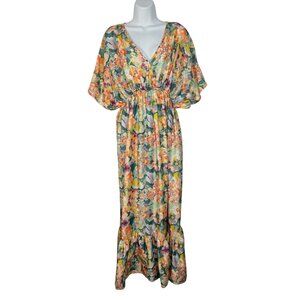 World Market Mira Watercolor Floral Maxi Kaftan Dress Multicolor L/XL