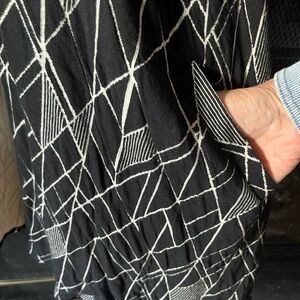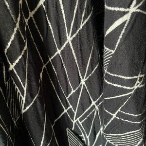 Elegant kimono with striking black and white patterns. Ideal for versatile styling.