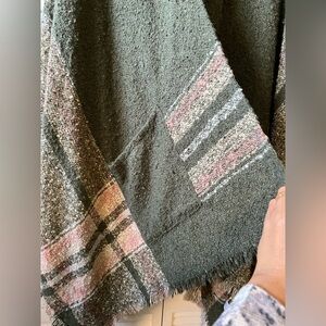 Elevate your style with this chic Women's World Market OS Poncho Sweater. The plaid pattern in green, blush, tan, and white is perfect for a bohemian look. The fringe accents and 3/4 sleeve length add a touch of elegance to this relaxed fit cape.