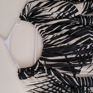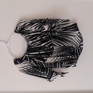 World Market Quarter Sleeve Blouse Women's Black Cream Tropical Print Size S/M