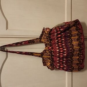 World Market Red & Brown Shoulder Bag with Bohemian Flair Cotton & Wooden Dowels