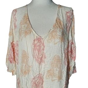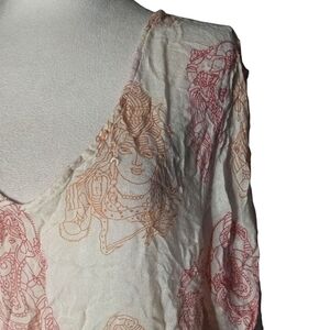World Market Red Goldenrod Hindu Elephant Print Caftan Lightweight Gauzy Size XL