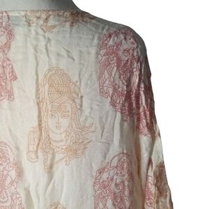 World Market Red Goldenrod Hindu Elephant Print Caftan Lightweight Gauzy