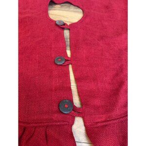 World Market Red Jute Christmas Tree Skirt With Ruffled Edge & Button Closure
