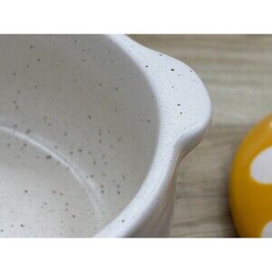 World Market Spotted Mushroom Lidded Soup Crock Gold Yellow Speckled Stoneware