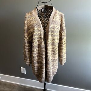 This tan cardigan from Cost Plus World Market features a textured, wavy pattern that adds depth and style. Its open-front design and long length make it perfect for layering, while the plush knit ensures warmth and comfort.