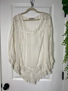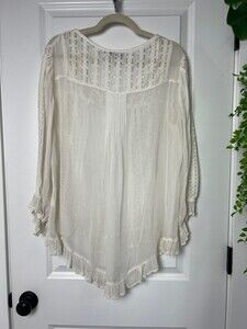 World Market Top White Boho Tunic Blouse Embroidery size large