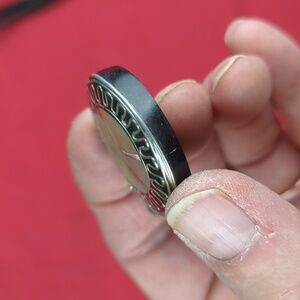 They are made with mother-of-pearl and silver wire, encased in a clear polymer, with a black back side. The MOP has silver dividing lines through it that look like they make the letter K... but sideways... my last name started with a K back when I bought it, so that was probably a draw for me, LOL!