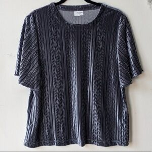 World Market Velvet Pleated Textured Blue Gray Textured Stela Velour Top