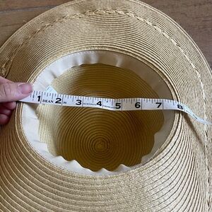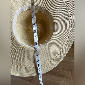 Description: Elegant wide brim straw hat in a light tan color. Perfect for sunny days.
