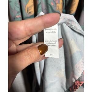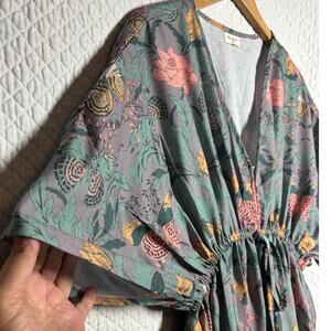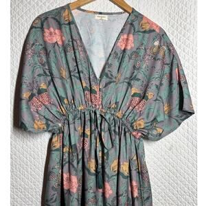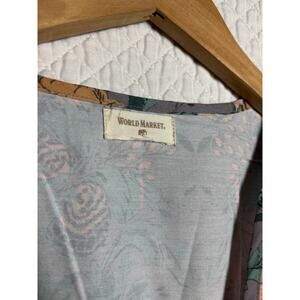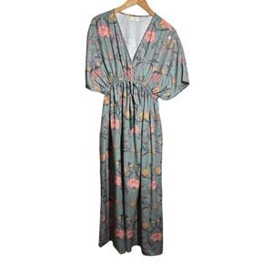 World Market Women S/M Gray Blue Floral V-Neck Dolman Boho Maxi Dress