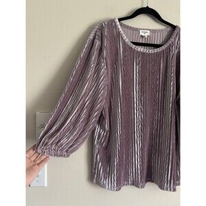 Beautiful blouse from World Market featuring bubble sleeves and a longer tunic length. Color is more of a pastel purple, lavender, lilac. Rich and soft velvet material that feels cool and comfortable. Blouse is slightly oversized and has some flow. Casual, classic, bohemian, festival, and slightly witchy vibes. Perfect with leggings, jeans, and more.